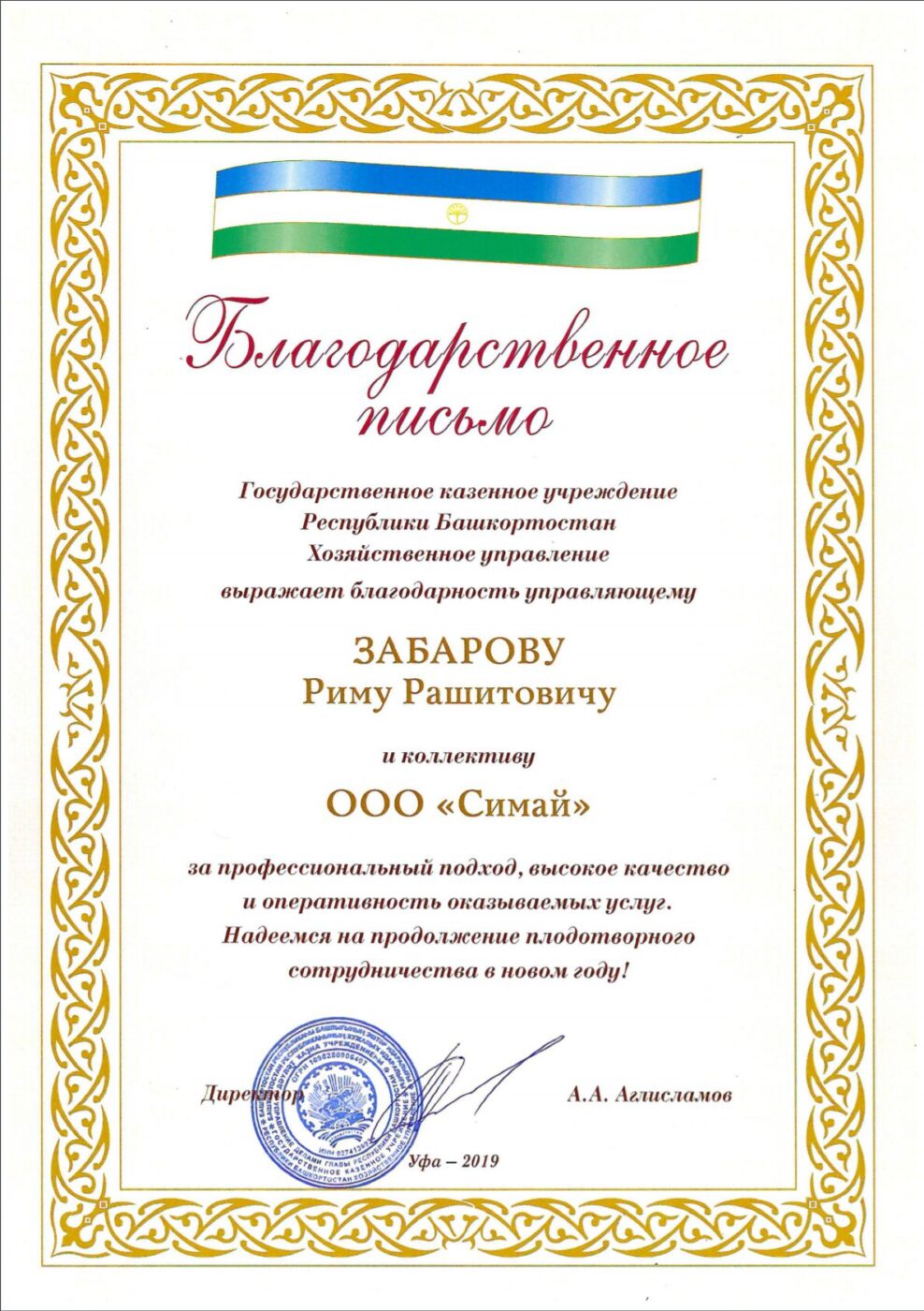 Благодарственное письмо