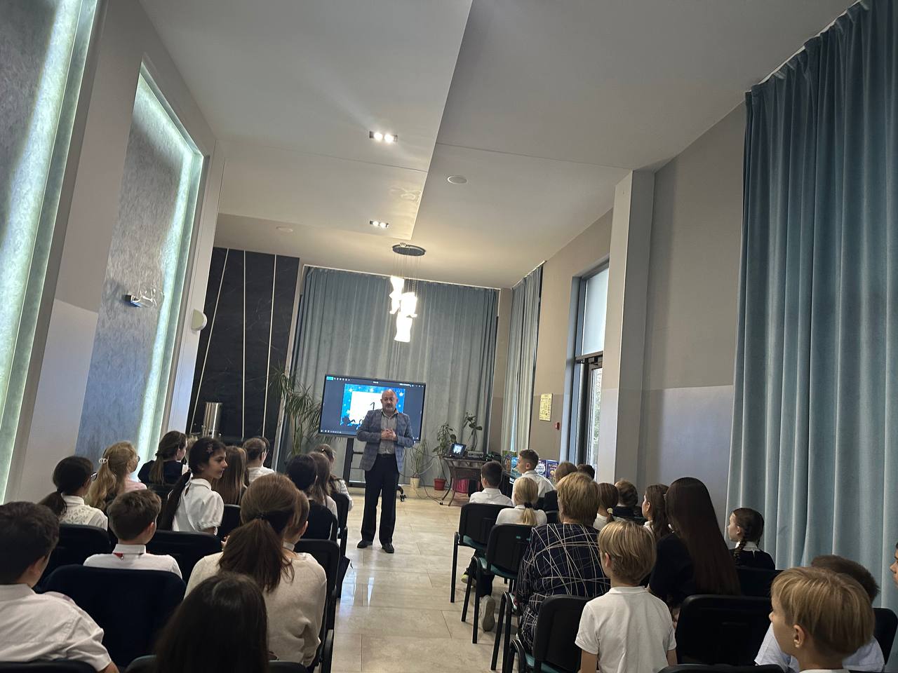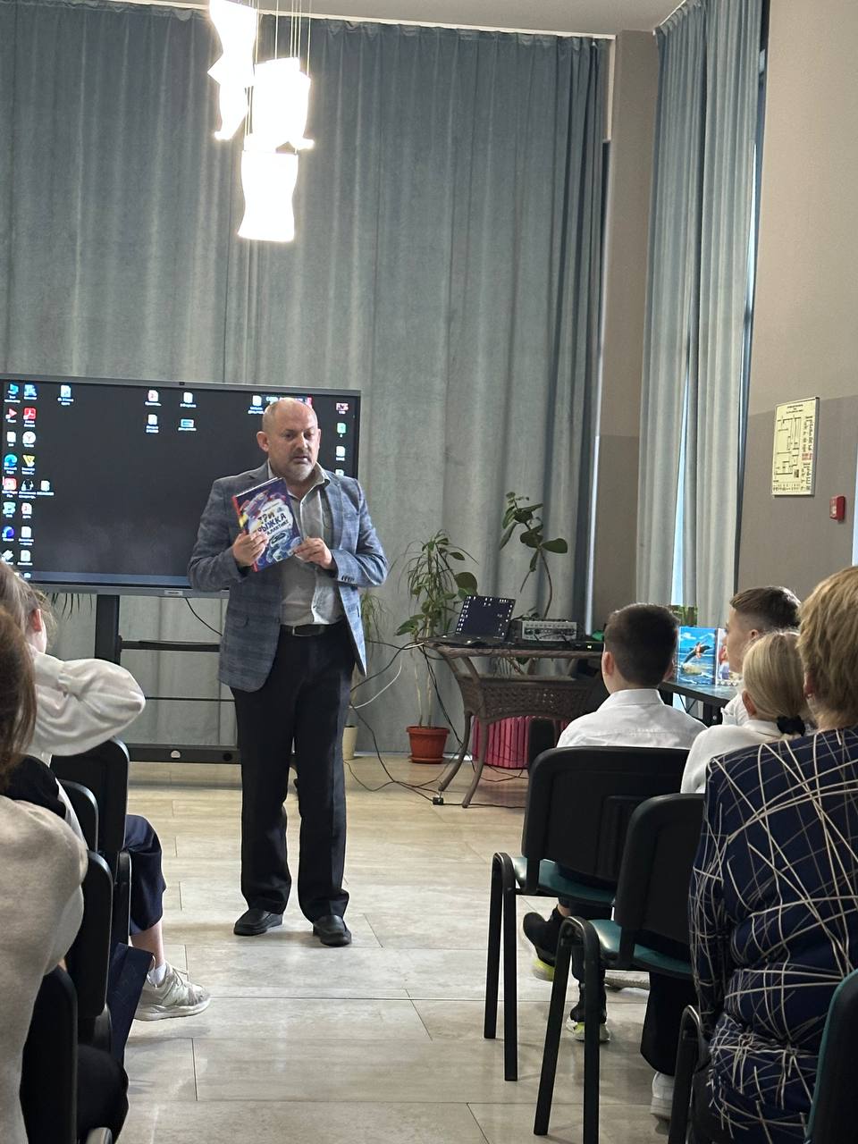 Мероприятие, которое прошло в тёплой и уютной атмосфере, стало настоящим праздником для учеников. Писатель поделился с ребятами историей своего пути в литературу, начиная с детства, и показал свои книги — яркие и современные произведения, в которых живут увлекательные герои, умеющие сопереживать и быть настоящими.